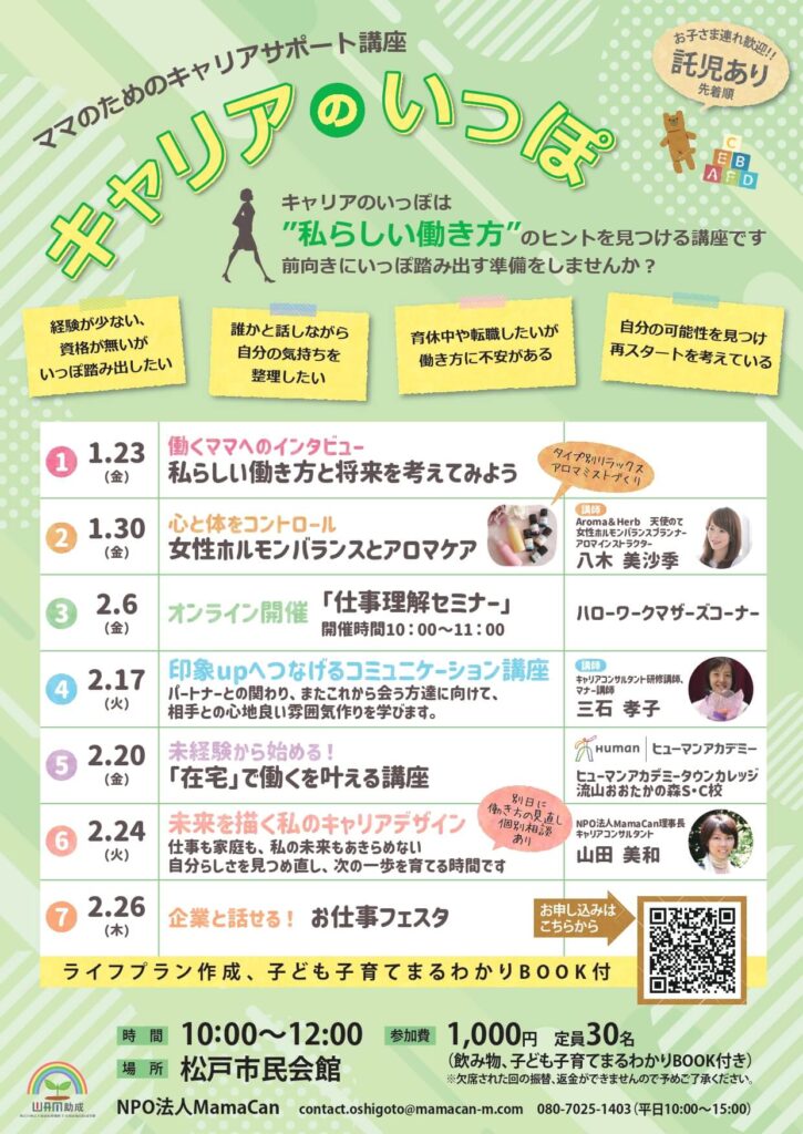 MamaCanで今年の5月からスタートしました第1回キャリアのいっぽ(松戸)のご報告です。