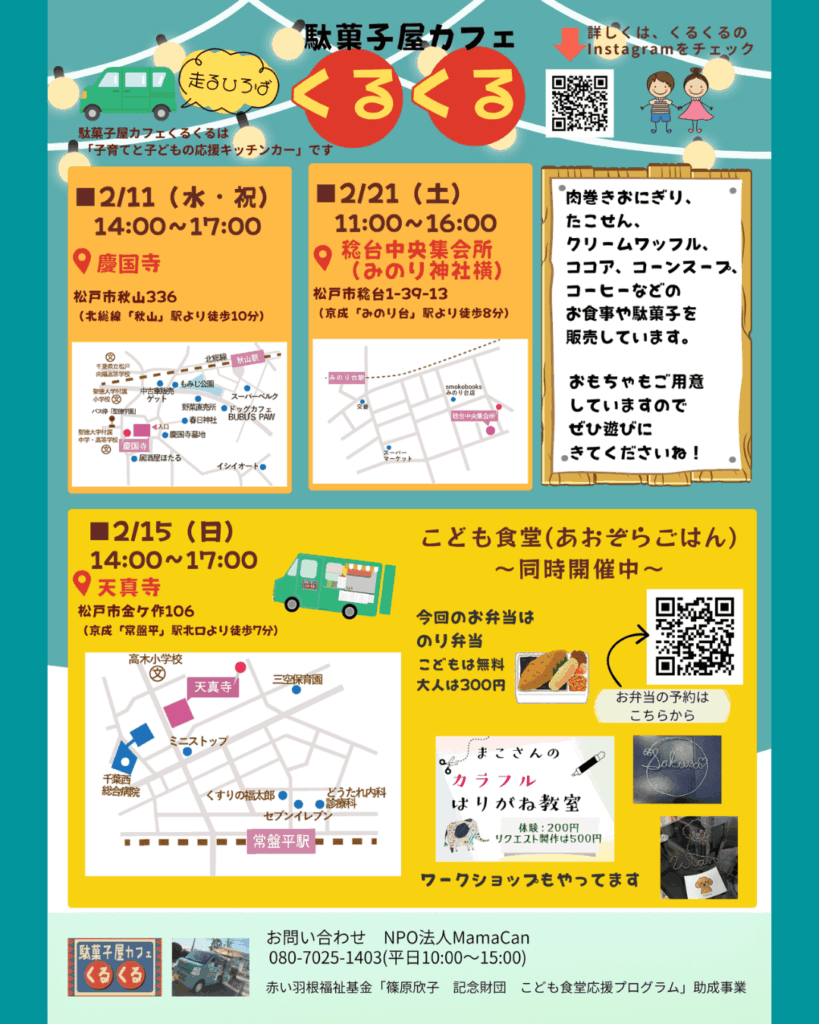 日程は駄菓子屋カフェくるくるのInstagramをご覧ください。