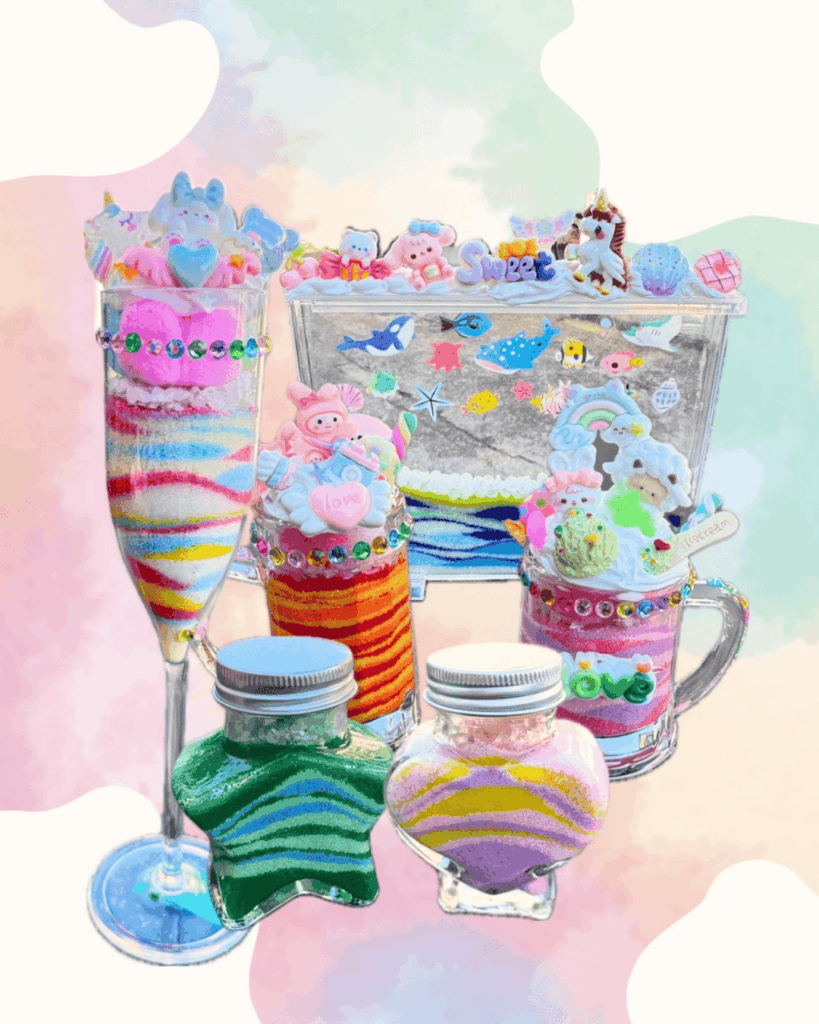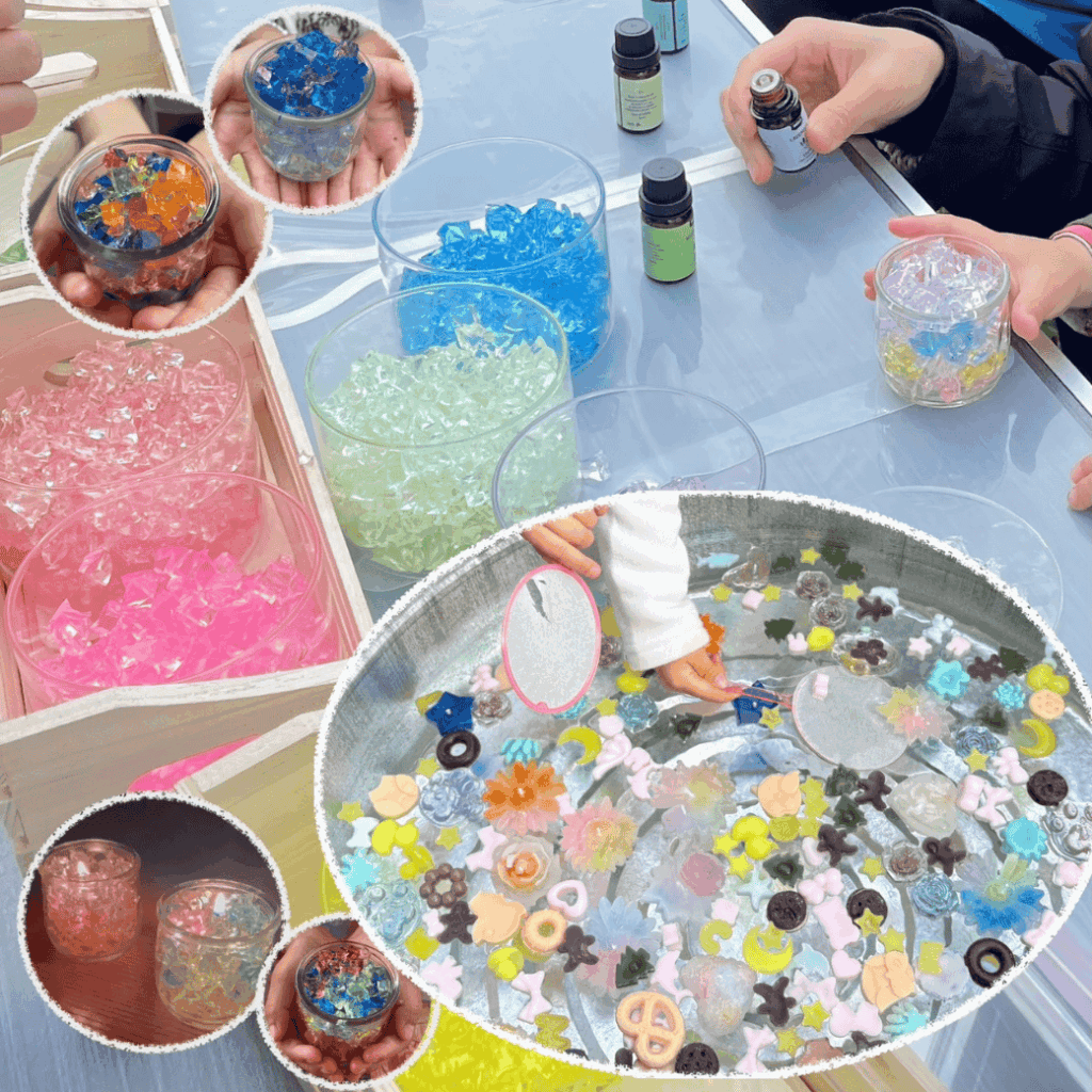 大人気のスクイーズやプニプニキーホルダーサンドアートパフェ作り大人から子供まで男女問わず楽しめるワークショップです!