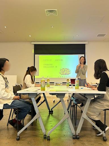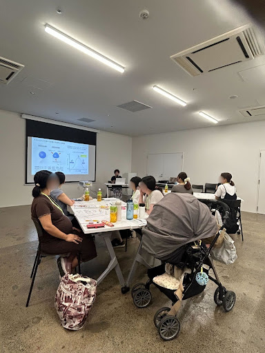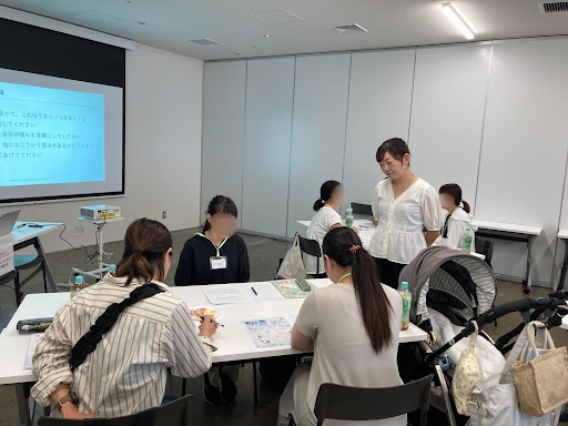 アットホームで話しやすい雰囲気の中、講師の方とも多く話し合うような場面がありました。また回を重ねるごとに、グループワークなどを通して参加者様同士の方も仲良くなっていく雰囲気がありました。お子さまの一時預かりも約半数の方にご利用いただきました。