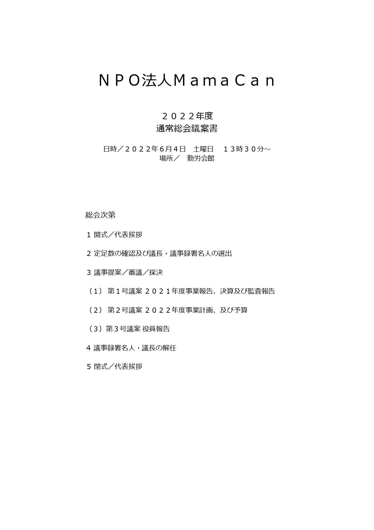 【ご報告】本日、2022年度NPO法人MamaCan通常総会を開催しました。