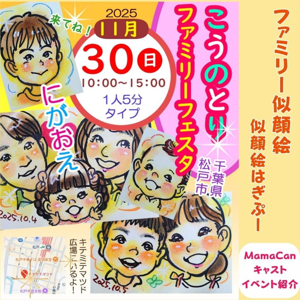 11/30(日)こうのとりファミリーフェスタ で似顔絵描きます。ひとり5分で描くタイプです!