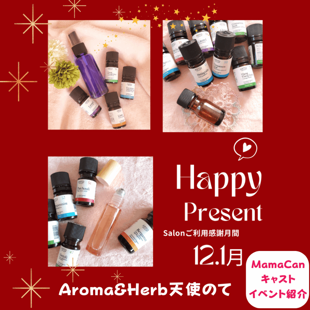 年末年始は感謝月間。トリートメントを受けていただいた方に【香りのプレゼント】付。ぜひご利用ください。