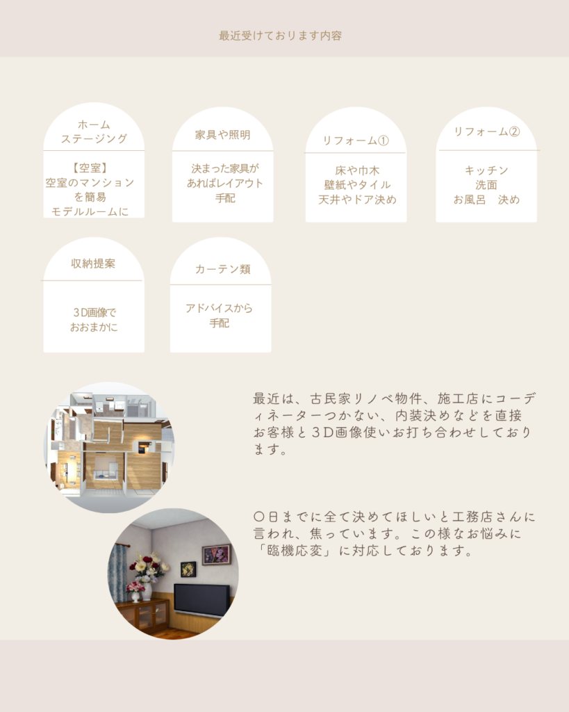 フリーのインテリアコーディネーターです。主に新居とご家族の成長に合わせたレイアウト提案をしています